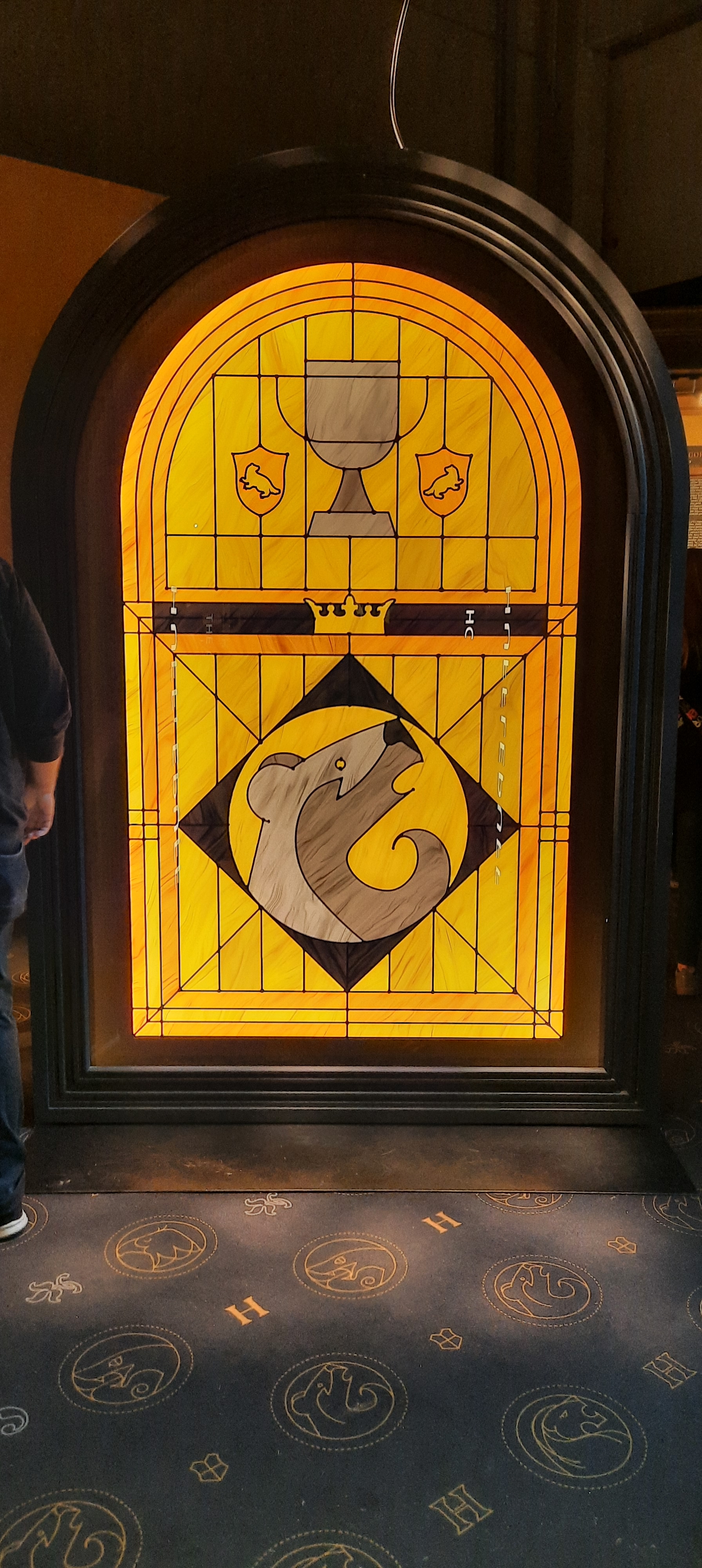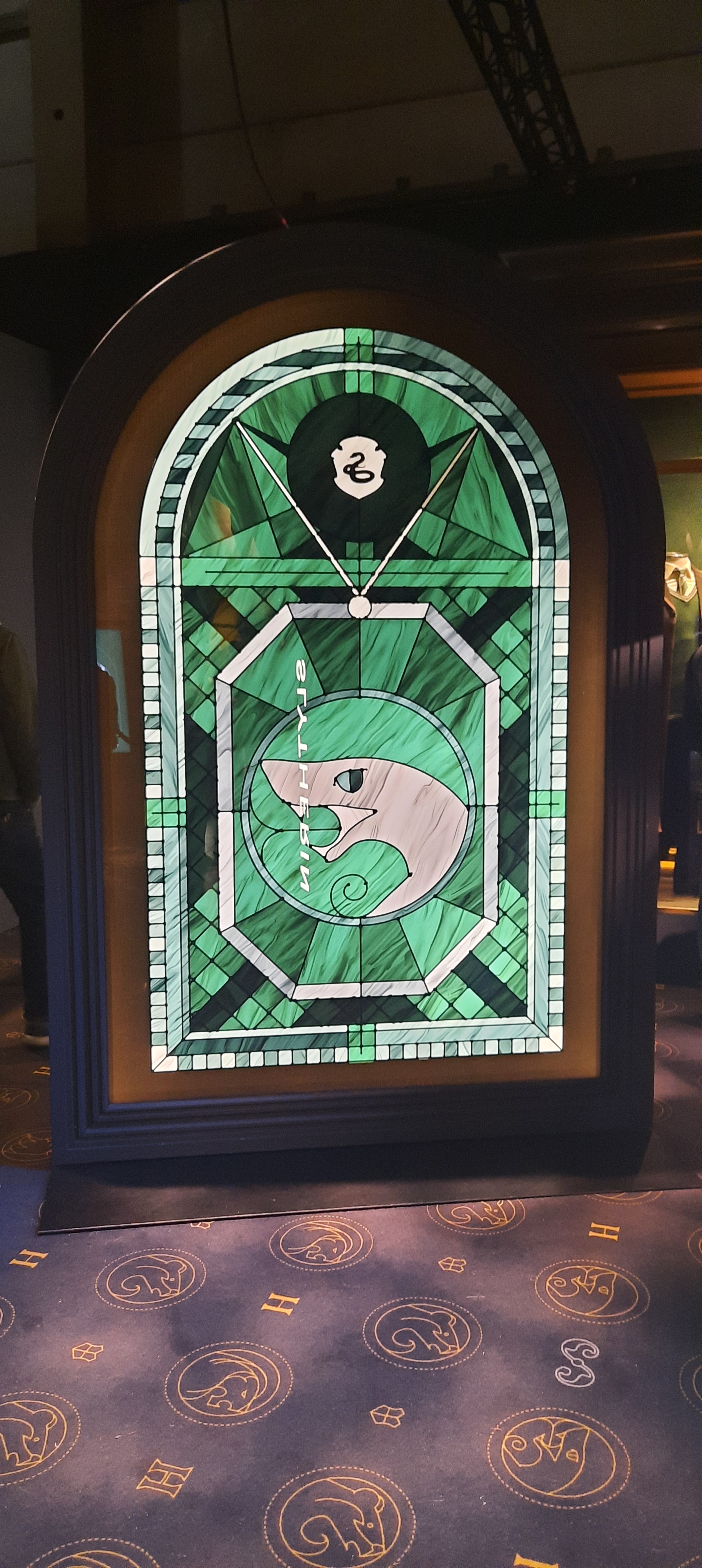 Es gibt diverse Kostüme der Darsteller zu bewundern, so kann man Bellatrix Lestrages schwarzes Kleid begutachten, oder auch die Kostüme der drei Hauptdarsteller. Besonders gut gefallen haben mir die bunten Glasfenster der jeweiligen Häuser mit den Hauswappen darauf, das schaut einfach toll aus!