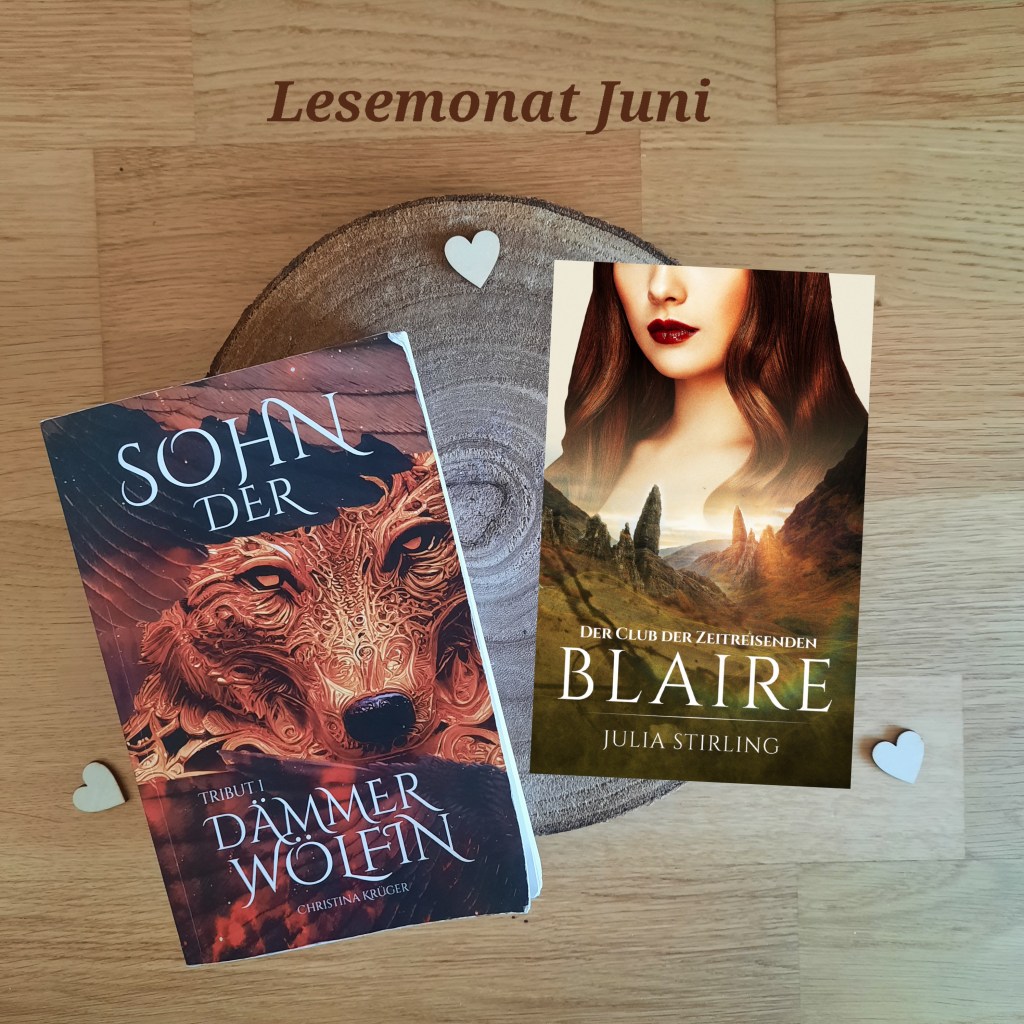 Im Juni habe ich zwei Bücher beendet: Blaire Der Club der Zeitreisenden von Eriness von Julia Stirling und Sohn der Dämerwölfin von Christina Krüger. Vielen Dank für die Zurverfügungstellung der Rezensionsexemplare!