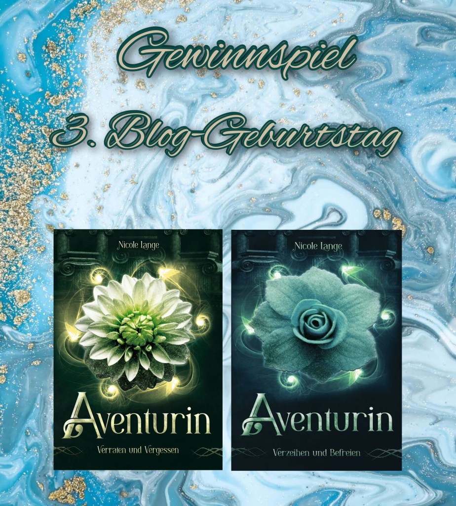 Das möchte ich mit euch feiern! 🥳 Für all die tollen Leser:innen meines Blogs gibt es darum nun auf Instagram ein Gewinnspiel! Ich habe mich mit der lieben Nicole Lange zusammengetan, und darf einmal ihre Aventurin-Dilogie verlosen! Um in den Lostopf zu hüpfen müsst ihr nur meinen heutigen Instagram-Post liken und einen Kommentar dort lassen. Außerdem freu ich mich natürlich, wenn der Post geteilt wird! Das Gewinnspiel läuft auf Instagram bis zum 16.3.2024, dann wird ausgelost. Viel Spaß beim Mitmachen!