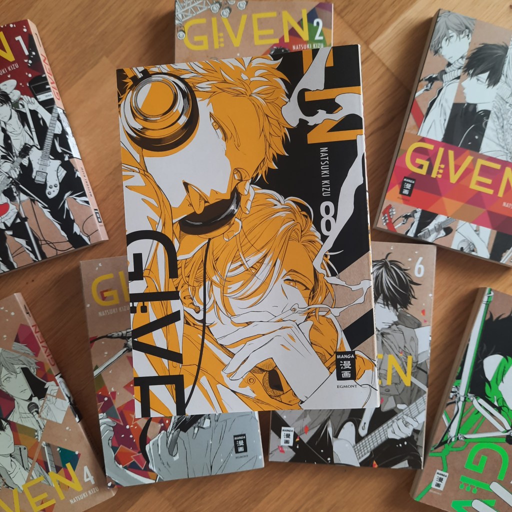 Dieser Band hat mir wirklich sehr gut gefallen! Die Handlung hat sich zügig entwickelt und ich bin nur so durch die Seiten geflogen. Es war schön, dass alle Protagonisten viel Raum bekommen haben. Im Mittelpunkt standen Uenoyamas Wunsch, sich weiterzuentwickeln und die Musik professionell zu machen, sowie Mafuyus zögerlicheres Hadern damit, ob auch er die Musik mit GIVEN hauptberuflich verfolgen will. Die beiden Kurzgeschichten am Ende waren auch sehr süß.