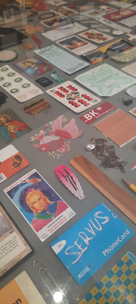 Eine äußerst interessante und ungewöhnliche Ausstellung – und ebenso erheiternd, denn viele der „Lesezeichen“ lassen die Betracher:innen schmunzeln. Mir hat die breit gefächerte Sammlung wirklich gut gefallen, man verweilt an verschiedenen Orten um Zeichnungen zu studieren, alte Einkaufslisten und Postkarten zu lesen oder über die skurilen Dinge zu staunen, die als Lesezeichen Verwendung gefunden haben.