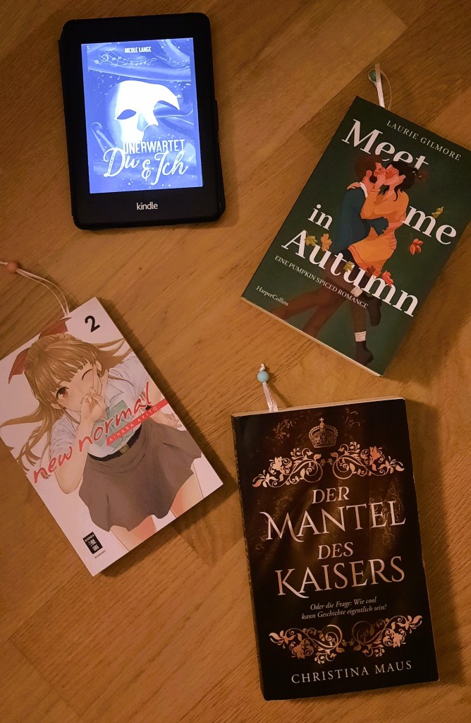 Ich habe an diesem Wochenende vier verschiedene Bücher fortgesetzt und insgesamt 408 Seiten gelesen, darunter zwei Liebesromane, ein Manga und ein historischer Roman, die alle ganz unterschiedliche Themen behandelt haben.