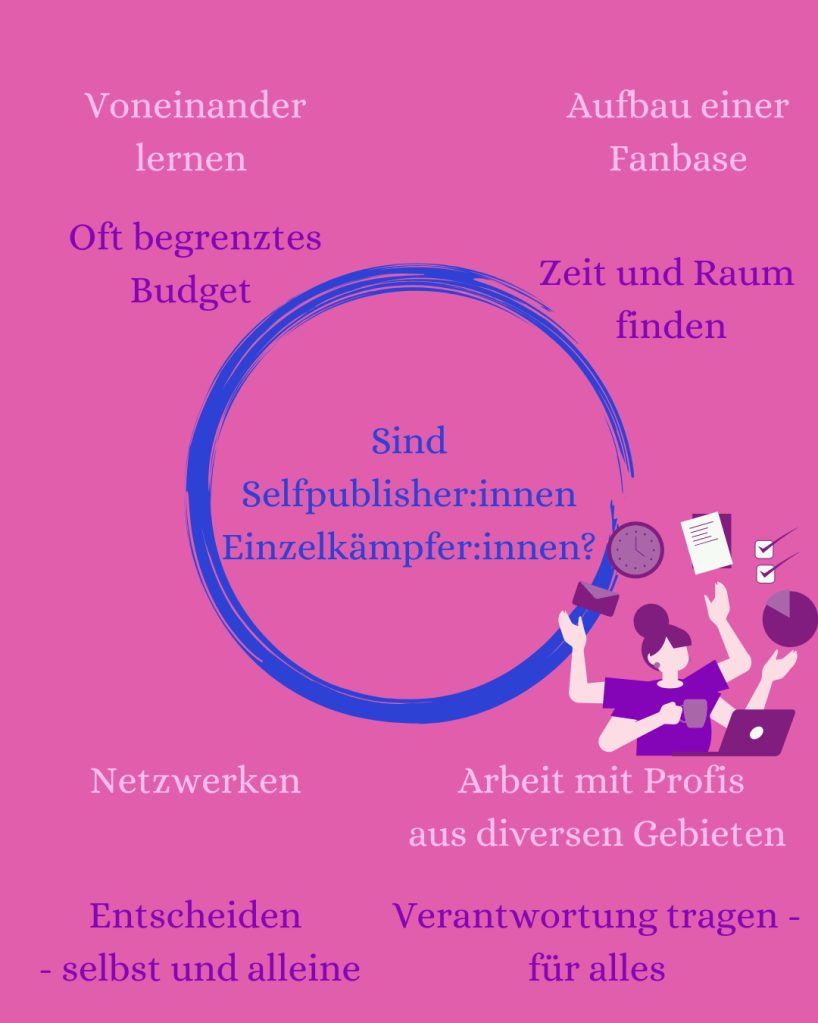 Trotzdem denke ich, dass Selfpublisher:innen nicht nur Einzelkämpfer:innen sind, sondern auch auf ein Netzwerk zurückgreifen.