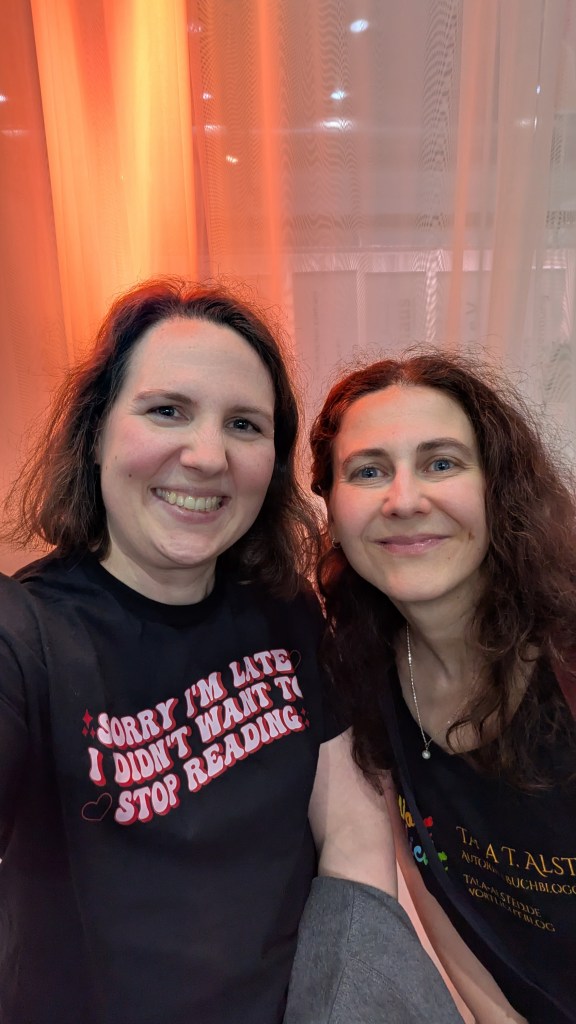 Ein besonderes Highlight war für mich jedoch das Treffen mit Autorin und Bloggerin Tala T. Alsted! Sie war eine meiner allerersten Blog-Bekanntschaften im Jahr 2020 und nach Jahren des digitalen Kontakts über unsere Blogs, dann E-Mails und schlussendlich auch Instagram, haben wir uns nun endlich einmal persönlich getroffen. Es war wirklich schön, jemanden, den man schon so lange kennt, mit dem man so viele Gedanken über Bücher, das Bloggen und Persönliches ausgetauscht hat, nun auch von Angesicht zu Angesicht zu treffen. Tala, ich freu mich riesig, dass wir Zeit zum Plaudern hatten und uns im Trubel der LBM gefunden haben 😀
