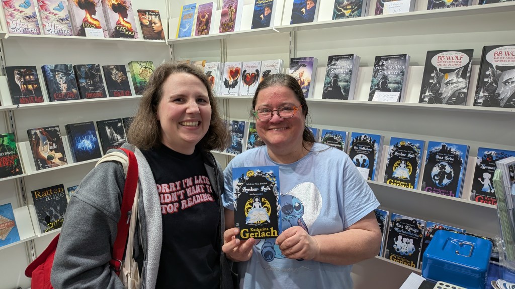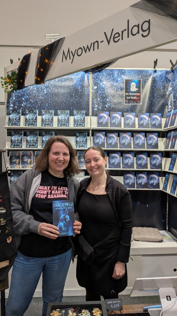 Auf der Messe haben sich viele Selfpublisher:innen und Kleinverlage getummelt. Neben dem Selfpublisher Verband hatten auch sie Stände und eigene Ausstellungsflächen – und auch wenn ich keine Zahlen dazu habe, kam es mir mehr vor als auf der Buch Wien. Dabei habe ich einige Autor:innen getroffen, mit denen ich schon zusammenarbeiten konnte – wie Fantasyautorin Petra P. Hasler – und auch neue Bekanntschaften geschlossen!